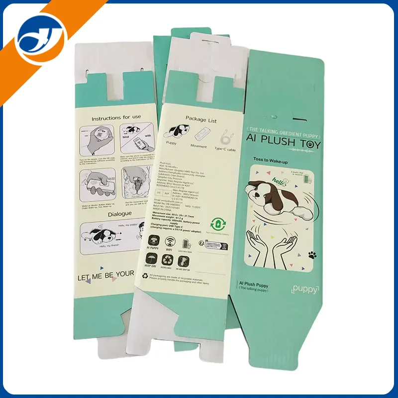 Jedná se o zakázkovou krabici z vlnité lepenky navrženou speciálně pro hračku plyšového štěněte. Tato vyřezávaná celobarevně potištěná krabička, navržená pro ochranu i vyprávění příběhů značky, kombinuje funkční design s ekologickými materiály, což z ní činí ideální řešení balení plyšových hraček. Vyrobeno z recyklovatelné vlnité lepenky, obsahuje jasné pokyny k použití, podrobný seznam balíčků a zprávy o značce, které zlepšují zážitek z rozbalování a zároveň jsou v souladu s udržitelnými postupy.